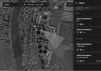 Alerts for threshold exceedances for odour at a wastewater treatment facility.