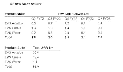 Q2 illuminates the diverse application of our product suite, with EVS Aviation rebounding strongly for its strongest quarter ever, while EVS Omnis (industrial and mining) and EVS Water (water treatment) continue to build in their respective markets.