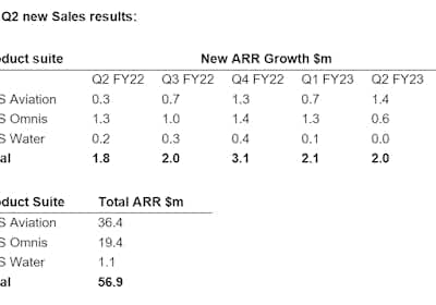 New ARR of $2.0m added in Q2 FY23 up 11% PCP and new Project Sales of $1.0m delivering a total of $3.0m in new Sales for Q2 excluding renewals.
