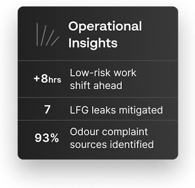 Nuestros algoritmos patentados identifican rápidamente el origen exacto de los problemas de olores, gases de vertedero y fugas de metano, independientemente de la complejidad del emplazamiento.